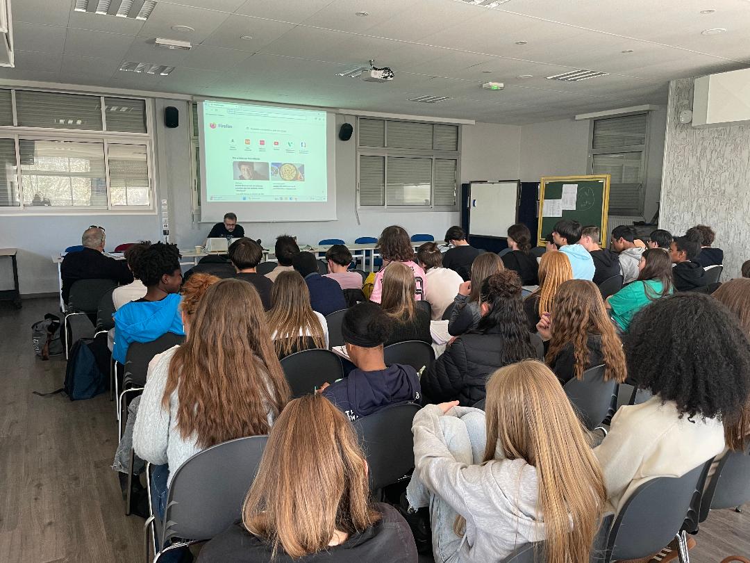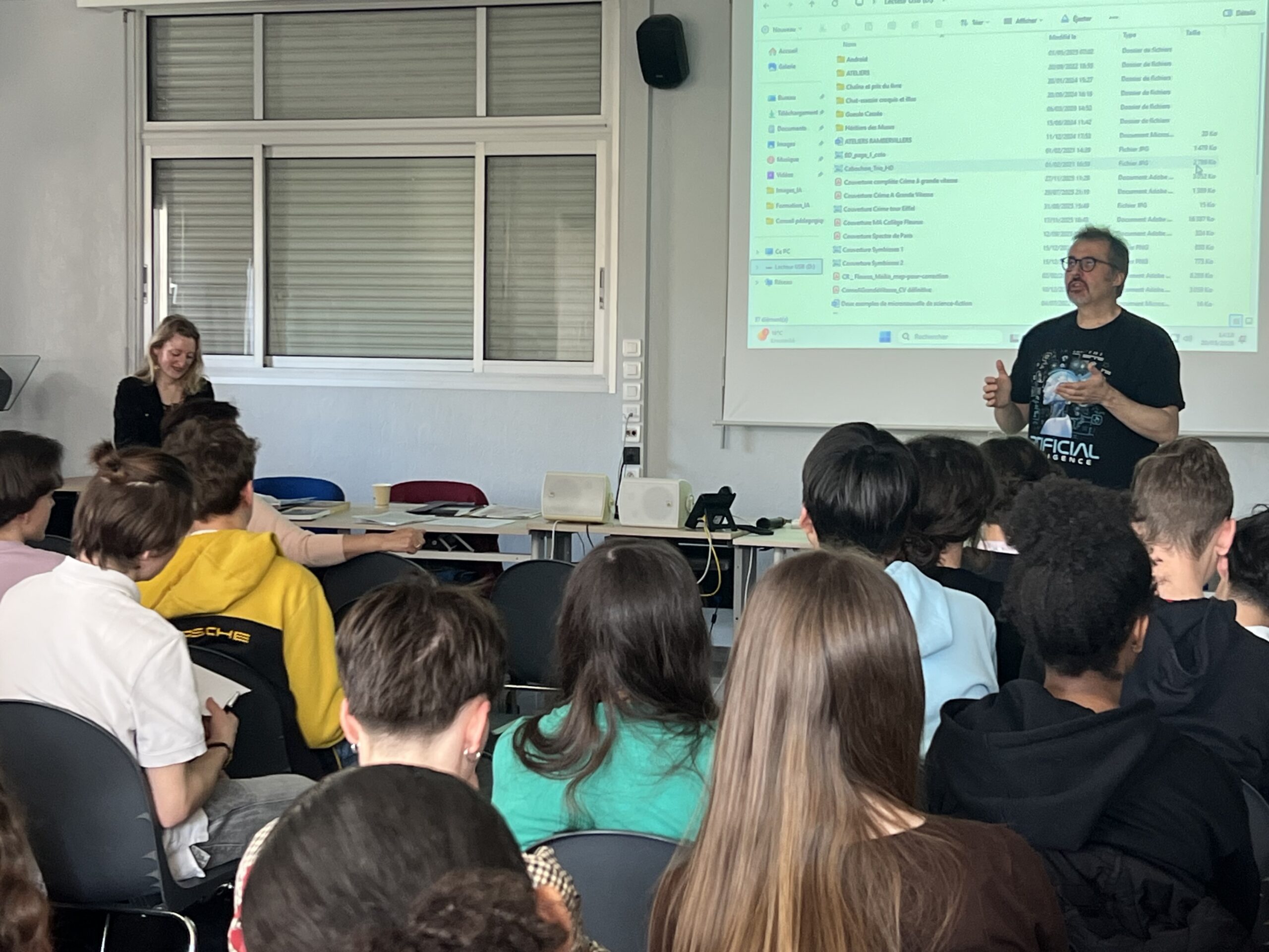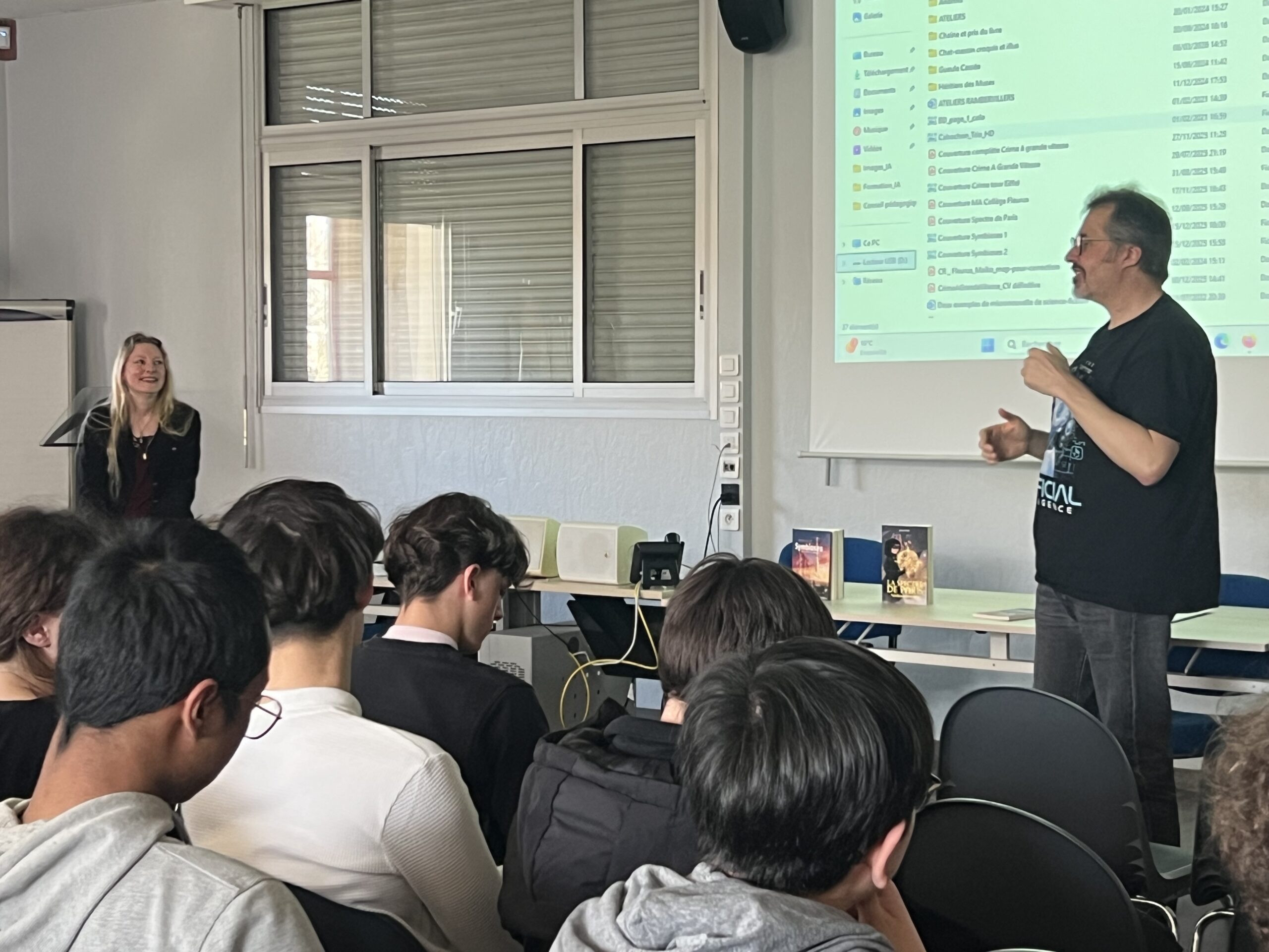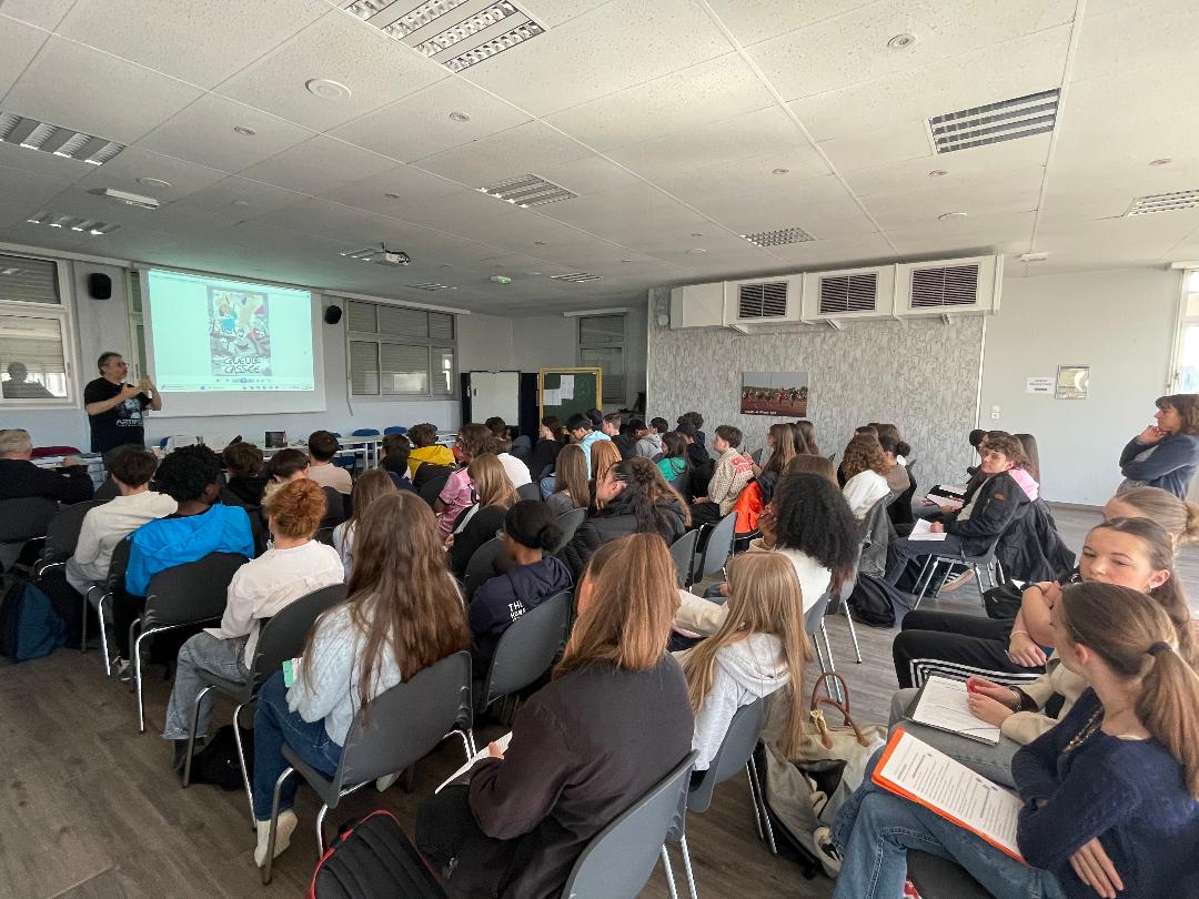 Déroulement : L’auteur s’est prêté à un jeu de questions – réponses avec nous. Cela a pu porter notamment sur ses sources d’inspiration, l’élaboration d’un roman, la démarche avec l’éditeur, un débat sur les nouvelles technologies. Puis il a vidéoprojeté des couvertures de ses romans pour problématiser le rapport entre l’image et le texte. Enfin, il a dédicacé nos livres , le tout sous l’œil avisé d’un journaliste venu exprès pour cette rencontre, encadrée par nos professeurs Mesdames Sabrina Mieur et Laétitia Lagarde, ainsi que la documentaliste Mme Audrey Delaunay.