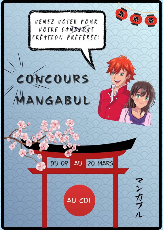 Les oeuvres des élèves participant au concours Managbul sont exposées au CDI à partir de ce jour et ce jusqu’au 20 mars.